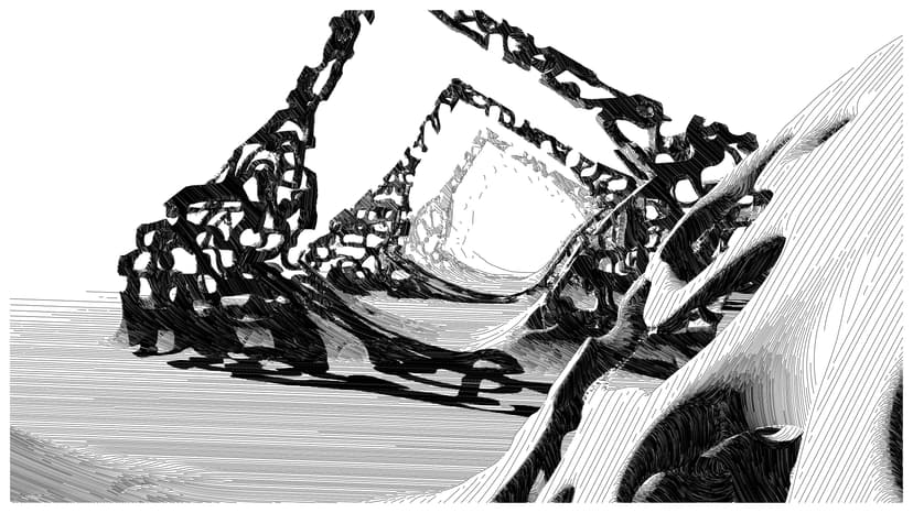Pasma enjoys encouraging others to create by organizing Genuary, an annual event where artists create daily pieces according to 31 carefully selected prompts. Another example is the "Universal Rayhatcher" project, where he invited other code artists to craft their own mathematical formulas and create over 500 unique scenes, rendered in the characteristic "rayhatcher" style.